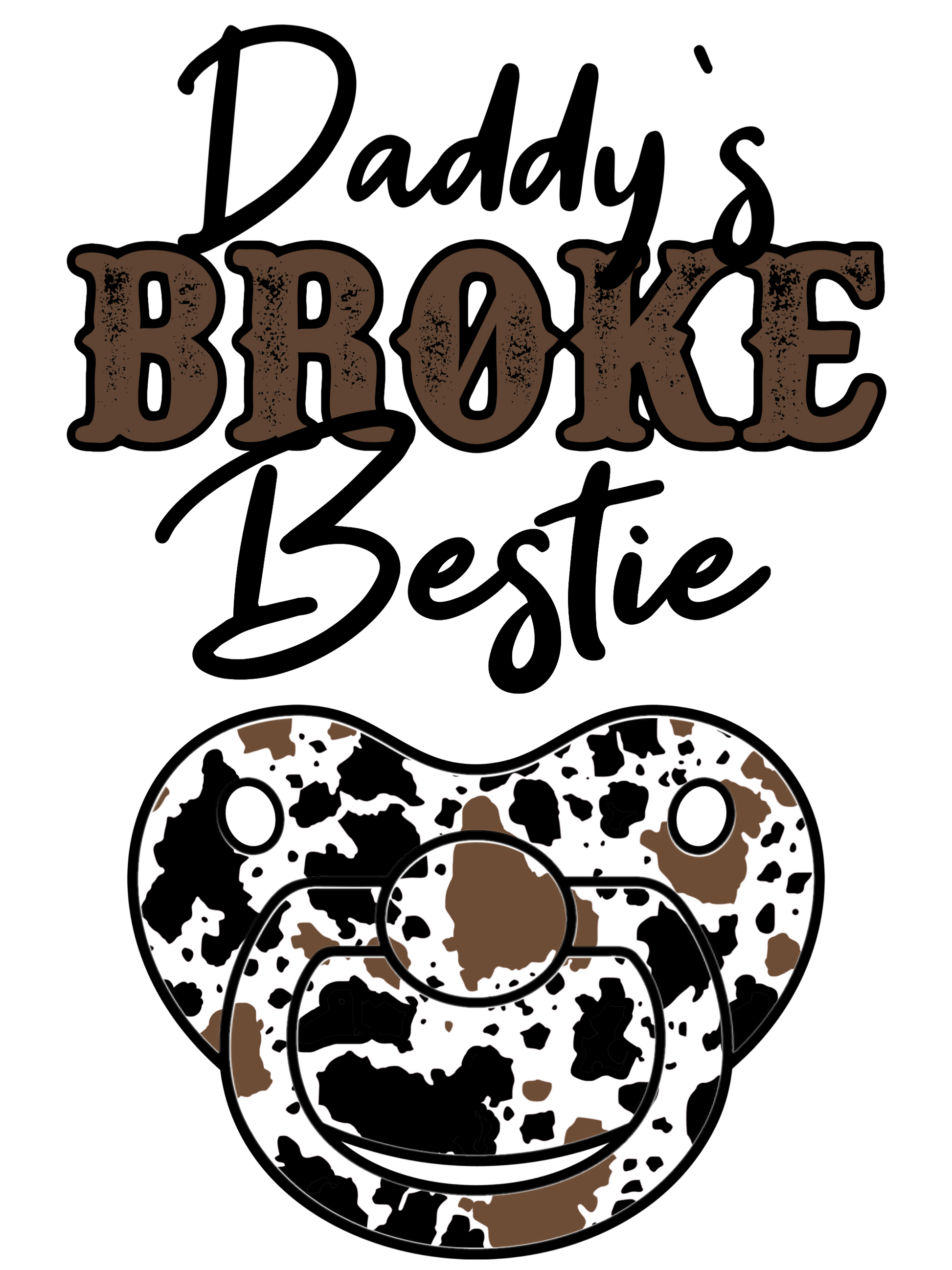 Embrace your inner fashionista with our "Daddy's Broke Bestie" cow print collection. This eye-catching design combines trendy animal print with affordable style, making a bold statement without breaking the bank. Perfect for those who want to stand out while staying budget conscious. Get yours today and show the world that fabulous style doesn't require deep pockets. This is a sublimation print which requires it to be on a polyester product.