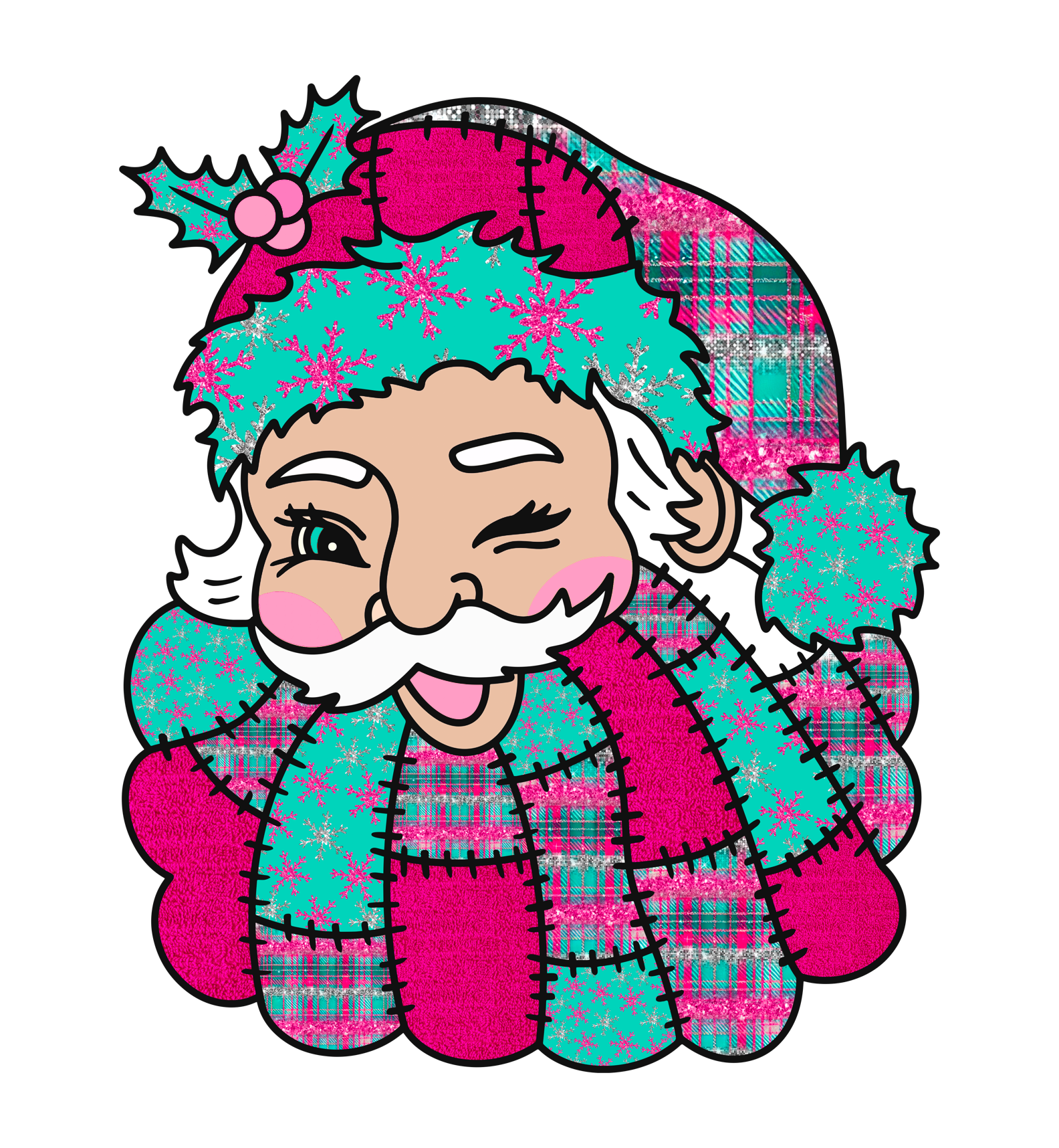 Teal & pink santa